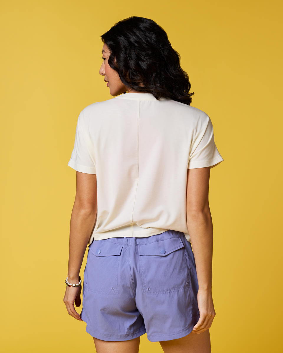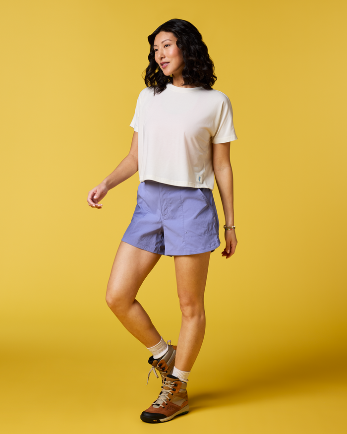 Scramble up high or stick your toes in the sand—the Empaca Crop T-Shirt is an adventure must-have. A stretchy and soft blend of recycled polyester, TENCEL?, and spandex makes this the ultimate companion for desert hikes or sunset cragging, and the cropped design pairs perfectly with high-waisted tights and denim cut-offs.