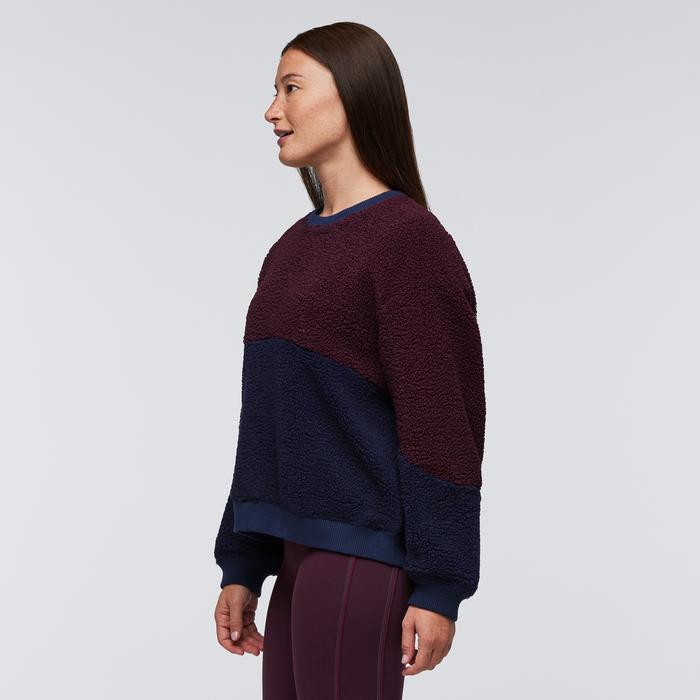 The High Pile Fleece Crew brings retro vibes to warm, durable, 100% recycled fabrics. With classic Cotopaxi colorblocking and a comfy oversized fit, this heavyweight crew can go from the backyard campfire to the ski town square.