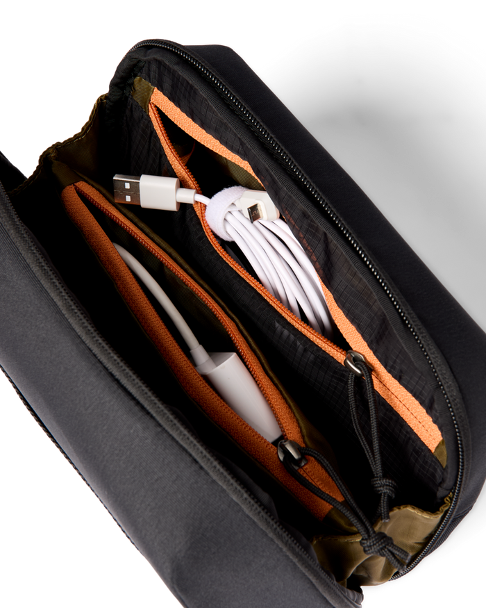For worry-free travel and easy access in your carry-on, zip all your cables and chargers into the Viaje Tech Organizer. This zippered pouch is made with a sturdy outer fabric and a soft brushed interior to protect your cords and devices.